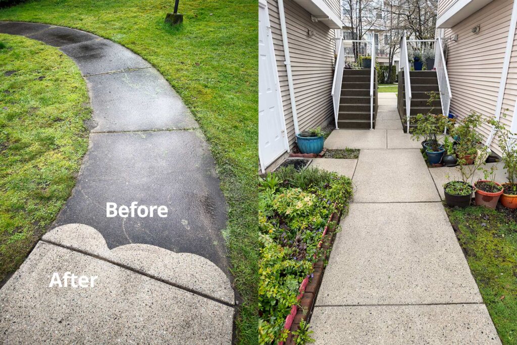 Power washing really should be a regular maintenance task, done every year or two as it is in most stratas. Our complex left it way, way too long until the walkways were literally black. But we finally had the work done and what a great difference.